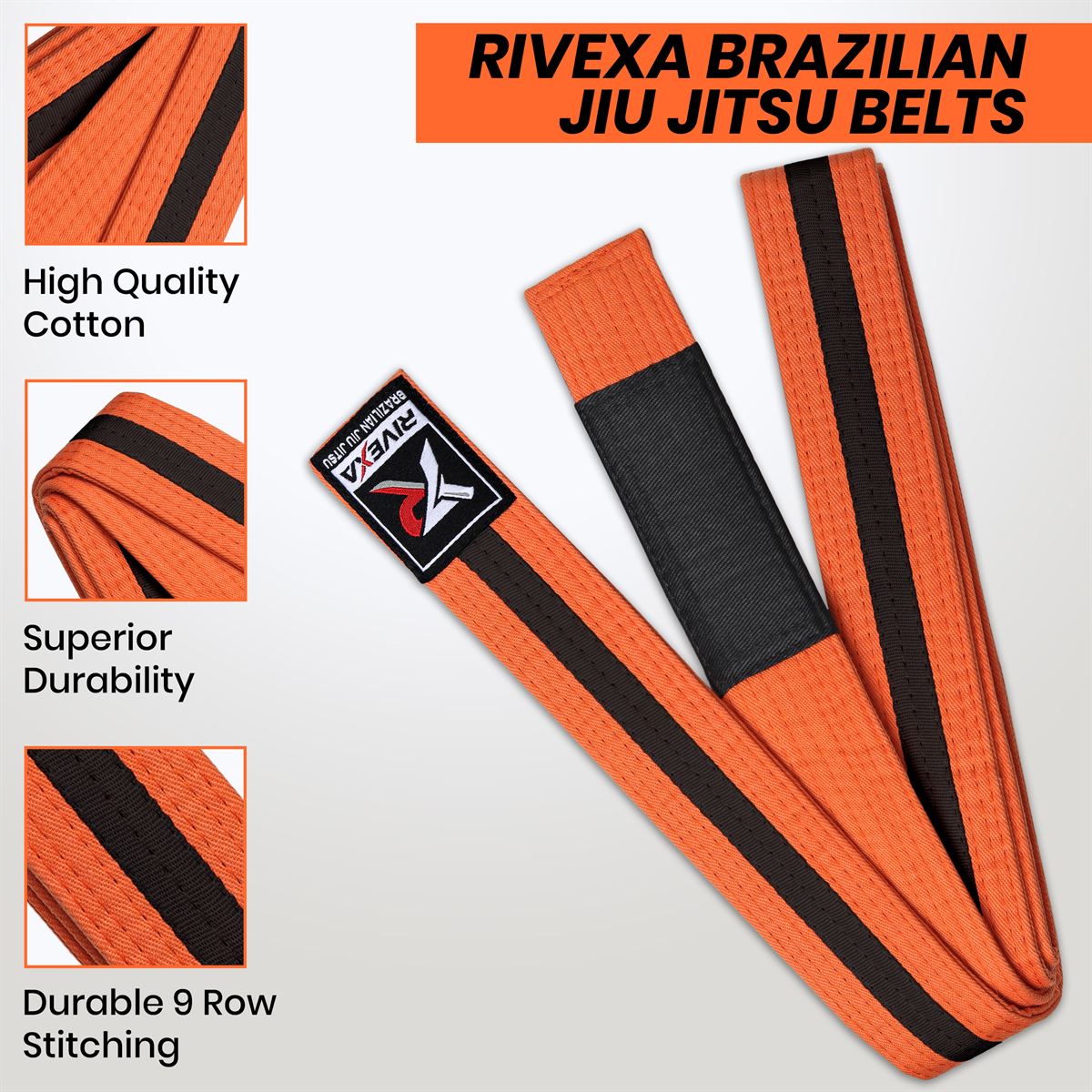 The Rivexa “Rising Star” Orange Belt is designed for dedicated junior practitioners moving up the ranks in Brazilian Jiu-Jitsu. Built with the same high standards as our adult professional gear, this belt is made to withstand the energy and intensity of young athletes as they sharpen their skills.
