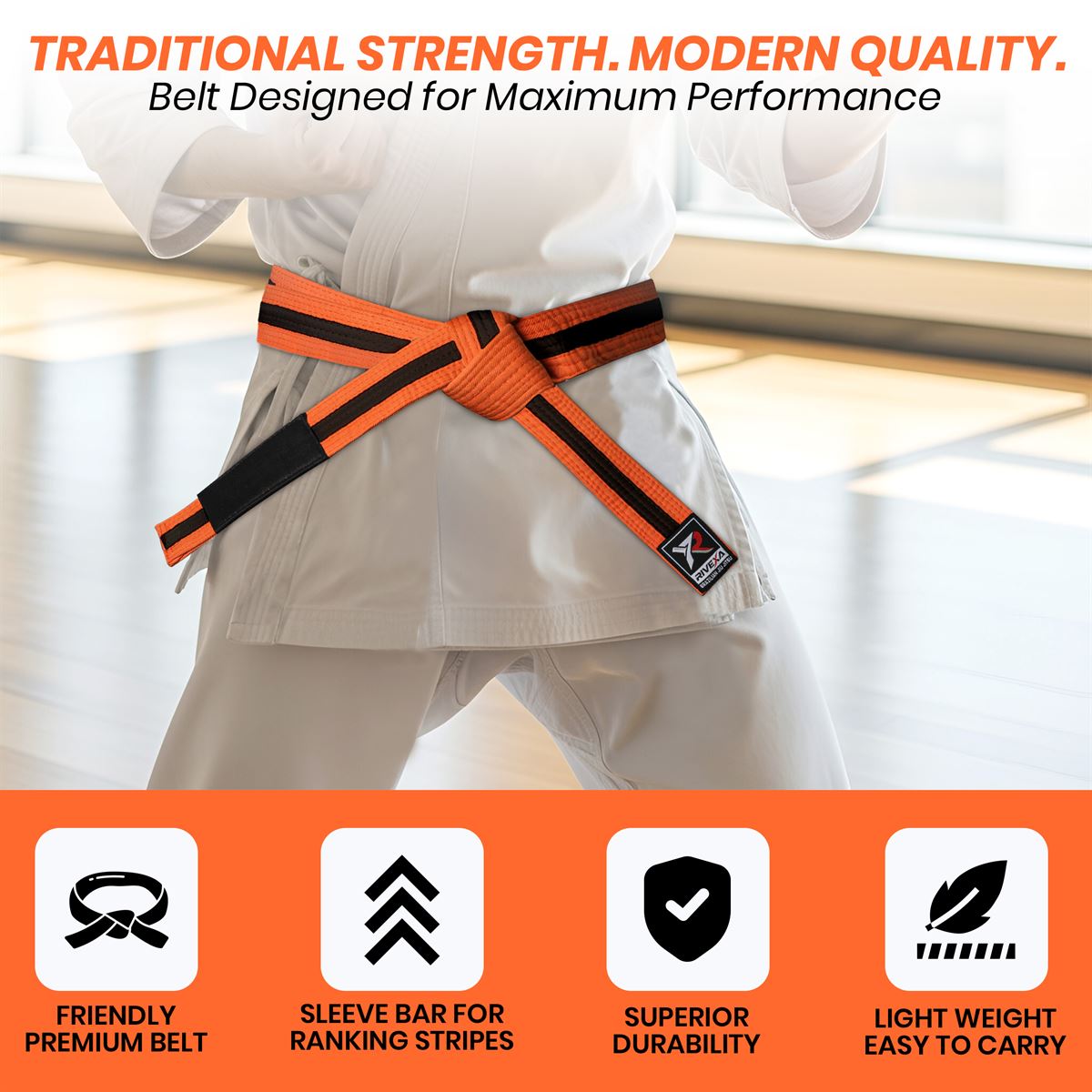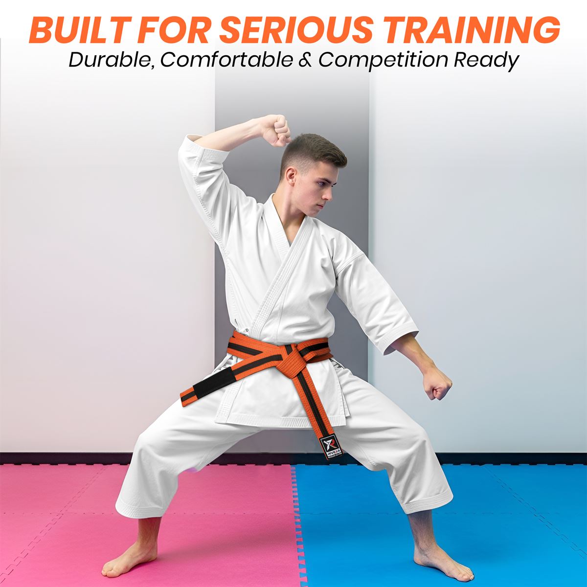 High-Impact Color: A vibrant, fade-resistant Orange that stands out on the mat, representing a significant milestone in a student’s progress.